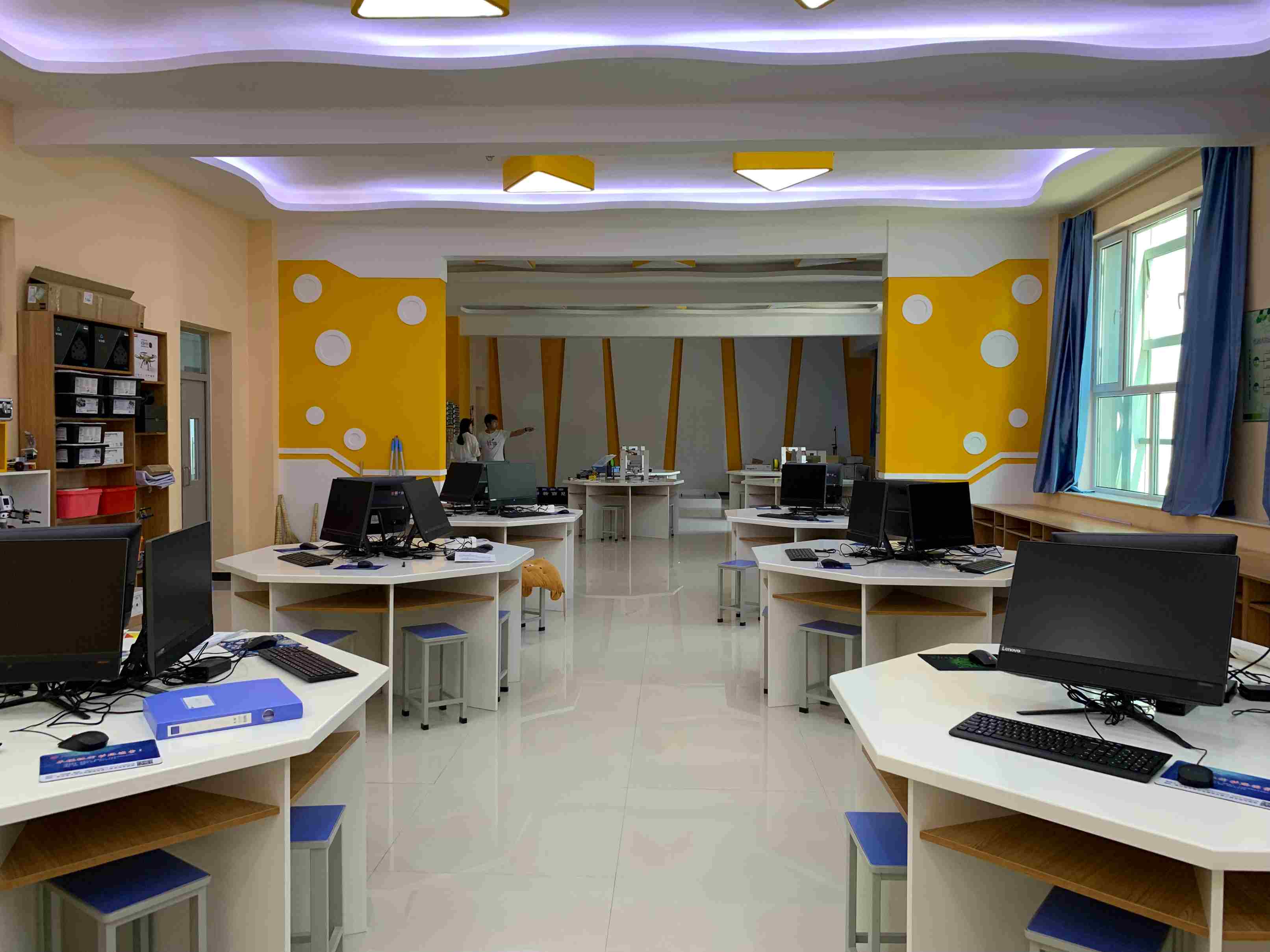 阿斑兔將機器人、創(chuàng)客、3D打印、航模等融為一體,研發(fā)、設(shè)計具有情景體驗、創(chuàng)意生成、原型制作、展示交流等多功能為一體的機器人教育教學(xué)場所,即創(chuàng)新教育實驗室,針對不同年齡段學(xué)生的特點、學(xué)校學(xué)情等,為其提供足夠的空間、設(shè)備和完善的課程體系。
